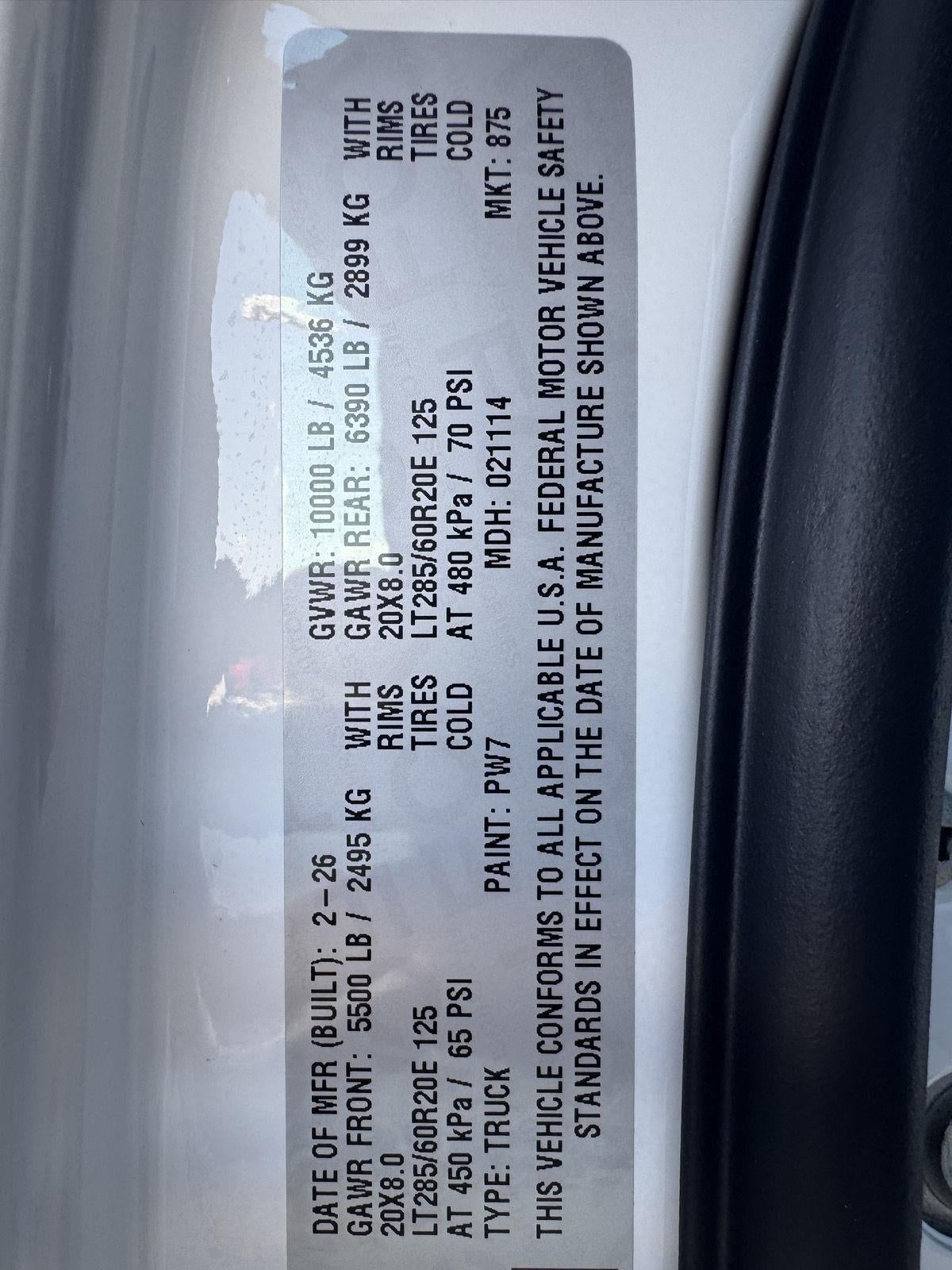 - Front Tire Size: LT285/60SR20