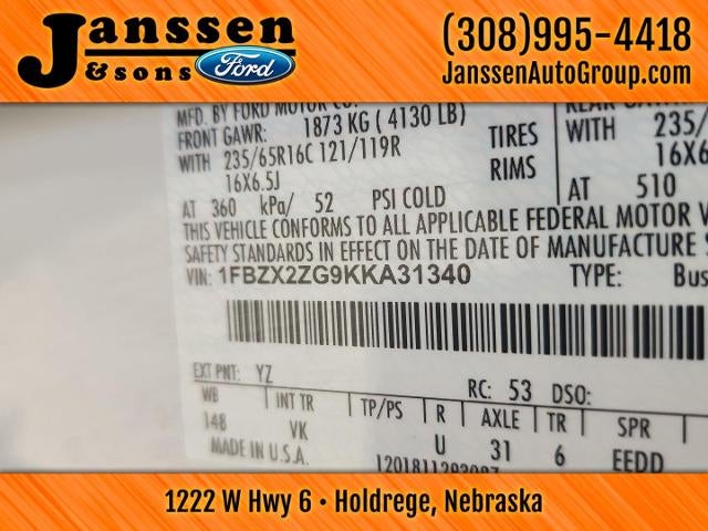 This 2019 Ford Transit Passenger Wagon XL is offered in Oxford White with Charcoal Black interior, and has 66,665 miles.