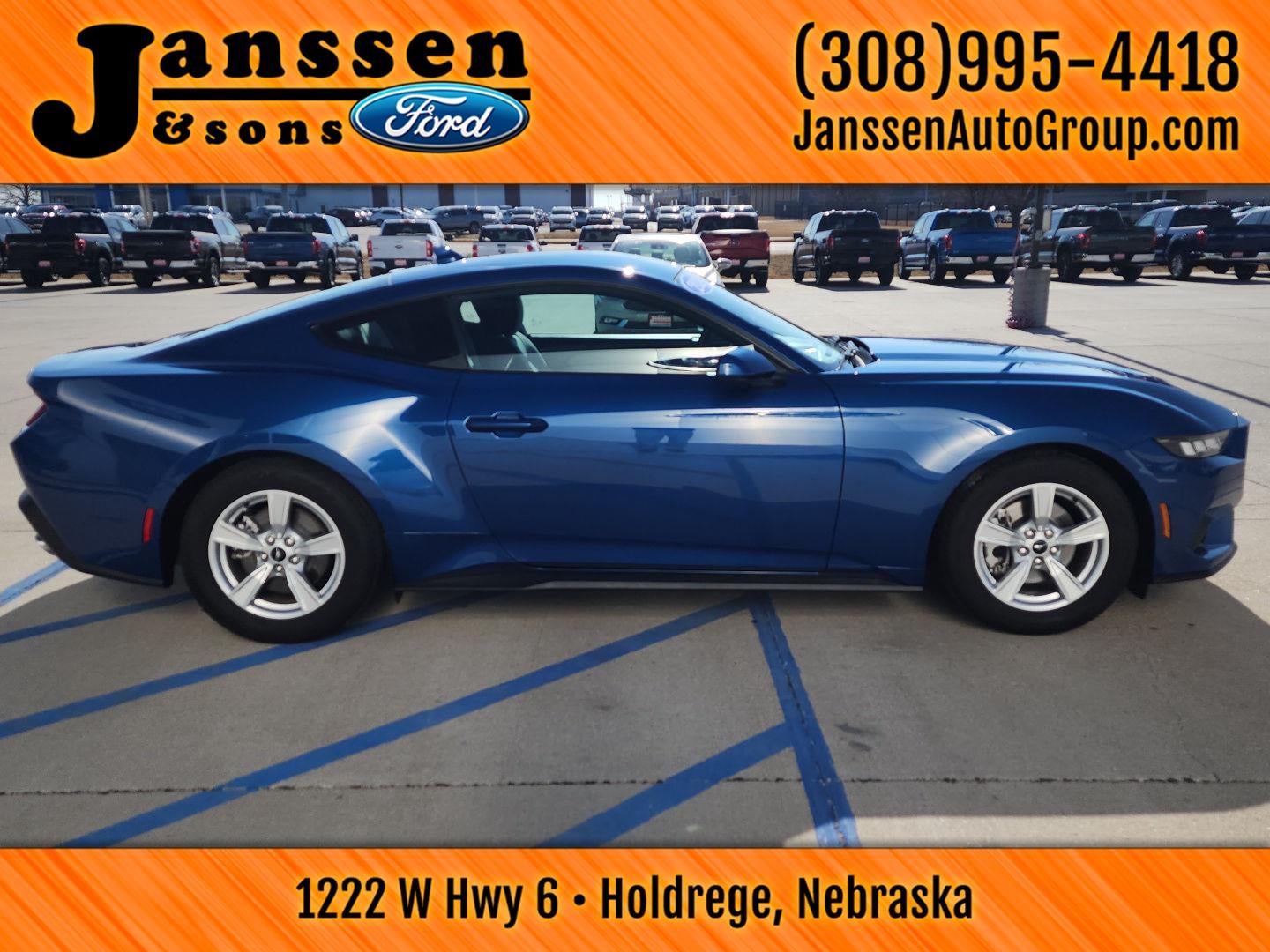 This 2024 Ford Mustang EcoBoost is offered in Atlas Blue Metallic with Space Gray interior, and has 17,616 miles.