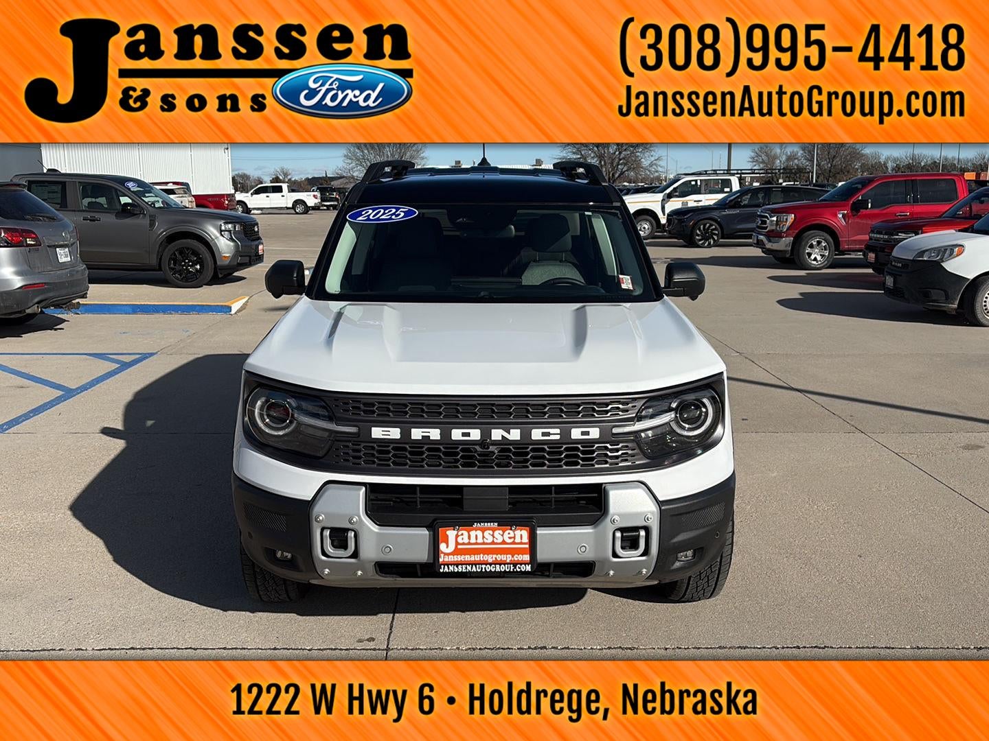 This 2025 Ford Bronco Sport Badlands is offered in Oxford White with interior, and has 14,301 miles.